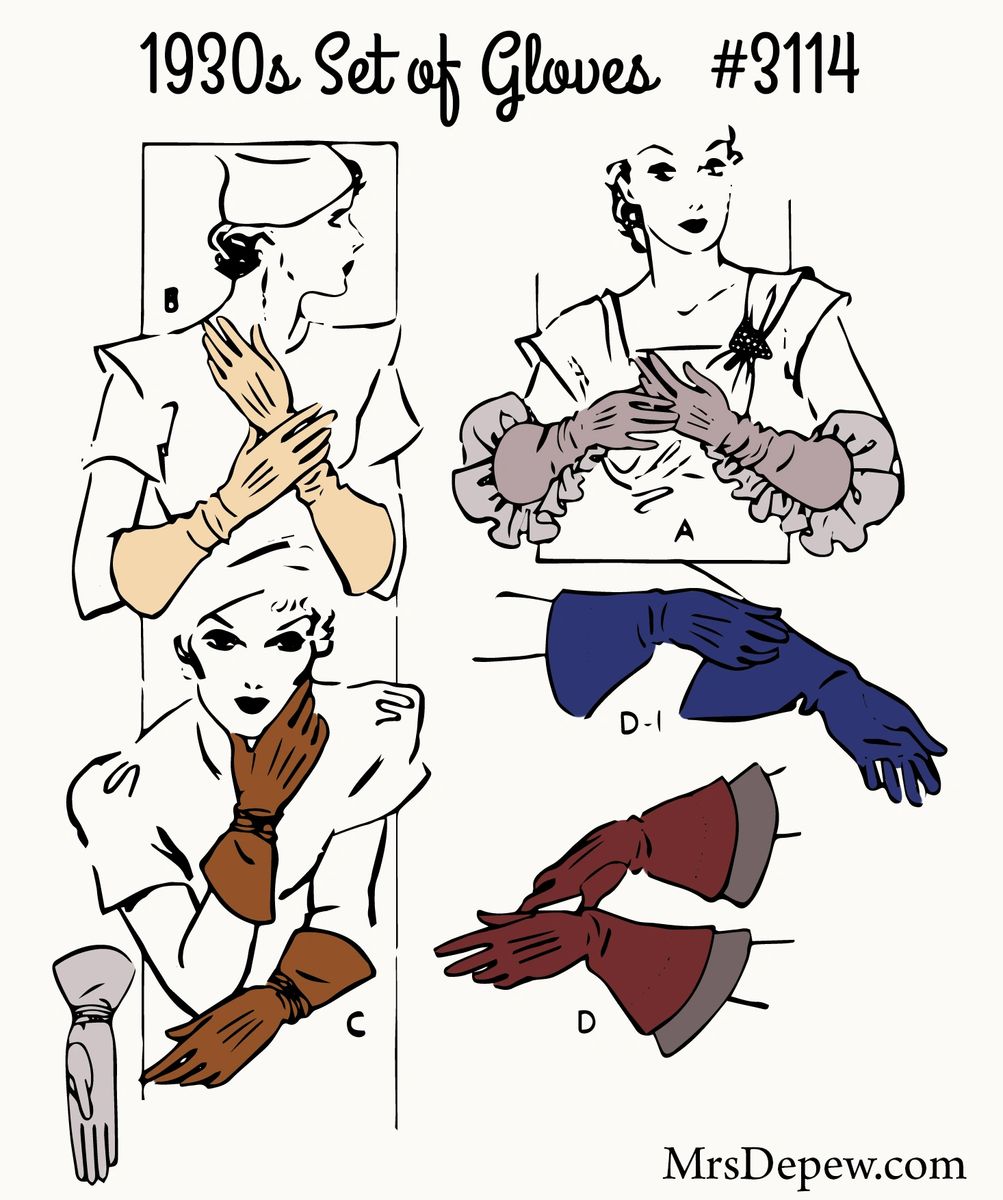 Vintage Sewing Pattern 1930s Ladies Gloves In 5 Versions Depew 3114 Instant Download