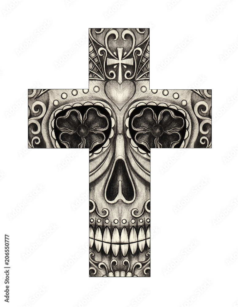 Art Skull Cross Tattoo Hand Pencil Drawing On Paper Stock Illustration Adobe Stock